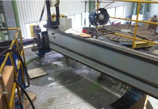 金屬焊絲成圈地放置在附設(shè)的焊絲盤中,通過埋弧焊機(jī)的送絲機(jī)構(gòu),以一定的速度連續(xù)、均勻地送人堆焊電弧,在堆焊電弧的高溫作用下均勻地熔化。金屬熔滴通過堆焊電弧與被堆焊工件的熔融金屬相混合,形成堆焊熔池。渣殼和未熔化焊劑覆蓋下的熔敷金屬冷卻后成為堆焊合金層。未熔化的焊劑被吸人回收箱,以便回收再用。應(yīng)控制埋弧堆焊機(jī)頭行走速度,以保證堆焊焊道形成螺旋形軌跡。