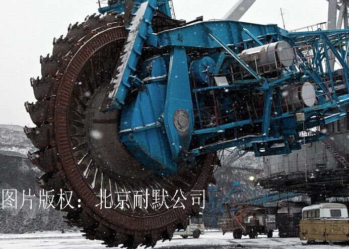 據悉,該“大型怪物”名為斗輪挖掘機,擁有奇妙的裝置和精巧的設計,在它的前部安裝了巨大的回轉輪。回轉輪中的鋸的直徑達12米。整個機器的機身重量達45000噸,有4層樓那么高。機器的最外緣是一系列的勺狀或桶狀裝置,在此通過傳送帶完成煤炭的裝卸工作。可以掃清前方的一切障礙,即使是高高的礦山也不在話下。