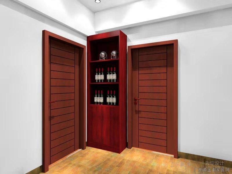 客廳酒柜放在主臥與次臥中間,由于業(yè)主選擇的門是桃紅色實(shí)木門,所以酒柜顏色選擇了與房門的顏色接近的桃紅色。